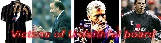 Also recently sacking of Chris Coleman of Fulham and West Ham's Alan Pardew are not fair. Craven Cottage, Fulham's homeground, is staging EPL last 5 years, although they could not recruit good enough players, because of him. Yet, When he lost 5 consecutive matches in ending part of 2006-07 seasons, they sacked him; instead of let him cool down and re-fix. Similarity goes with Pardew pushed West Ham back to EPL and FA cup final; yet they sent him because of losing form for short-period.
